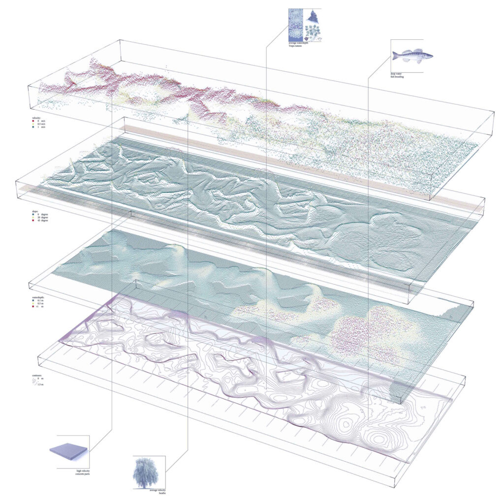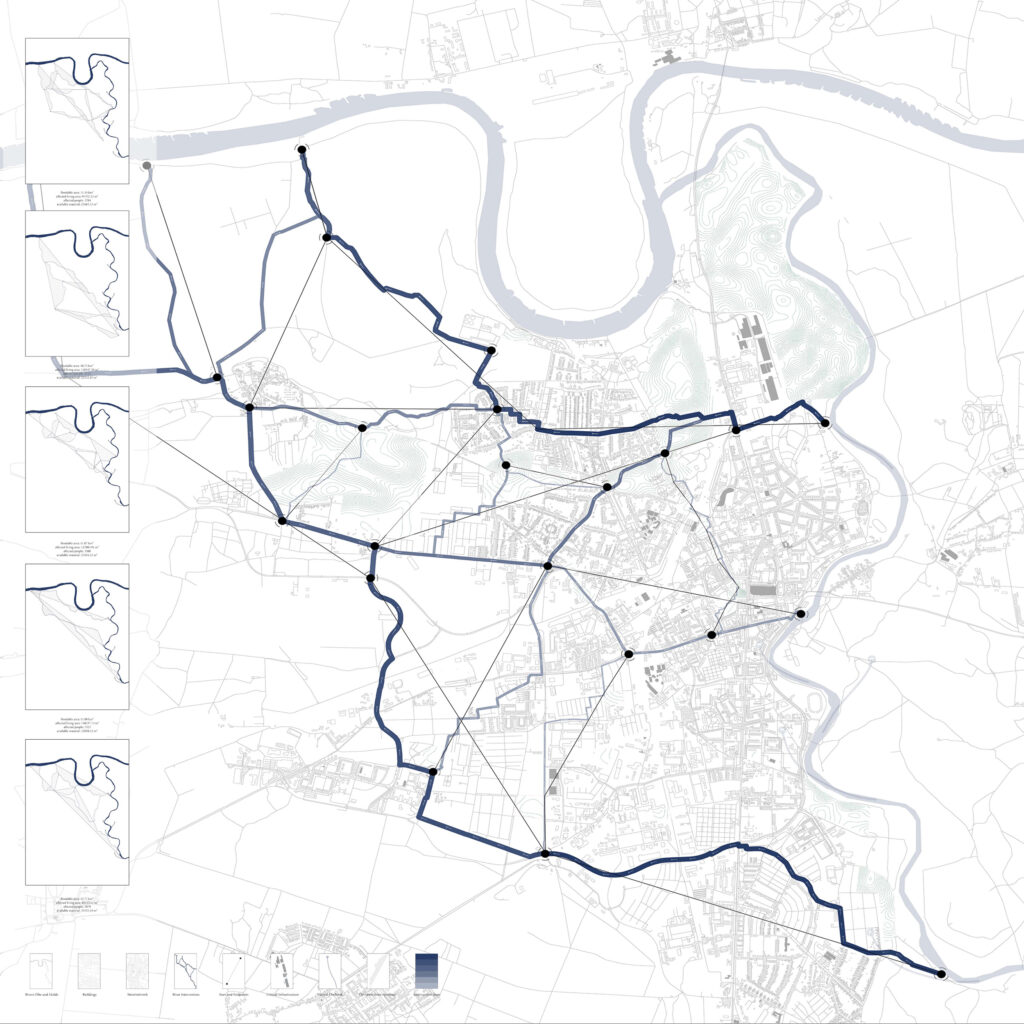 The main aspiration of this project is to transform the river from a threat to a potential that can be used for a city’s benefit; to be used to protect the urban environment instead of being confined within its natural movement. The river as an everchanging system offers myriad opportunities to the adjacent cities who are forced to constantly invent new uses in order to give the river the freedom it needs to act naturally and provide future opportunities. Currently, most rivers in middle Europe are engineered in urban areas which provokes major flood events further downstream.